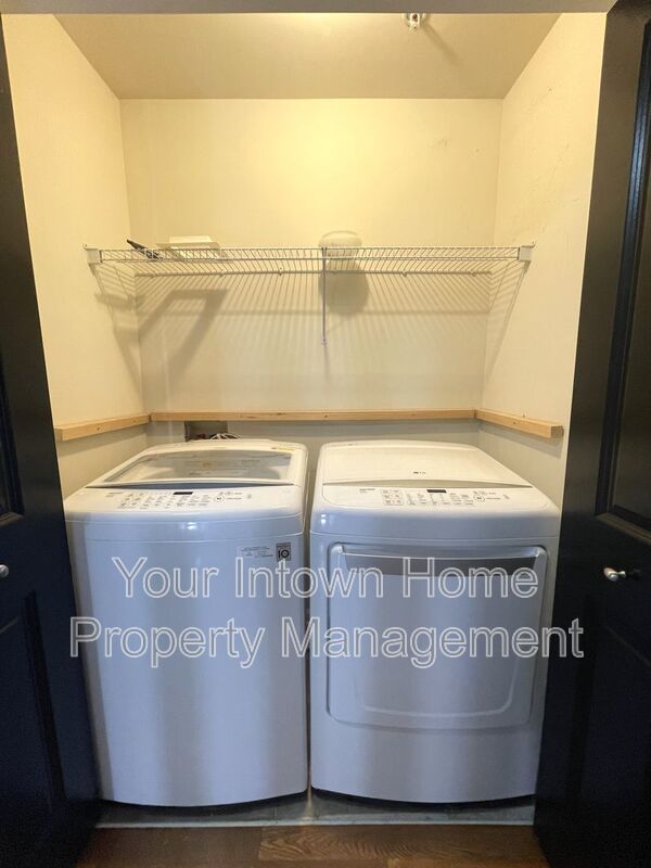 - Upstairs laundry closet with shelving