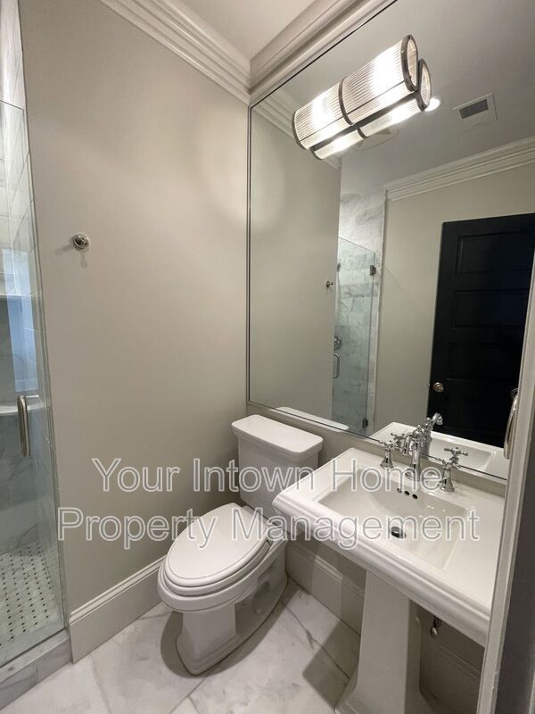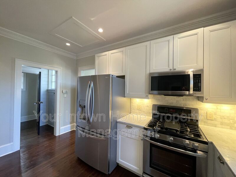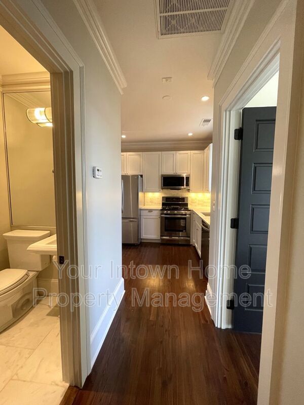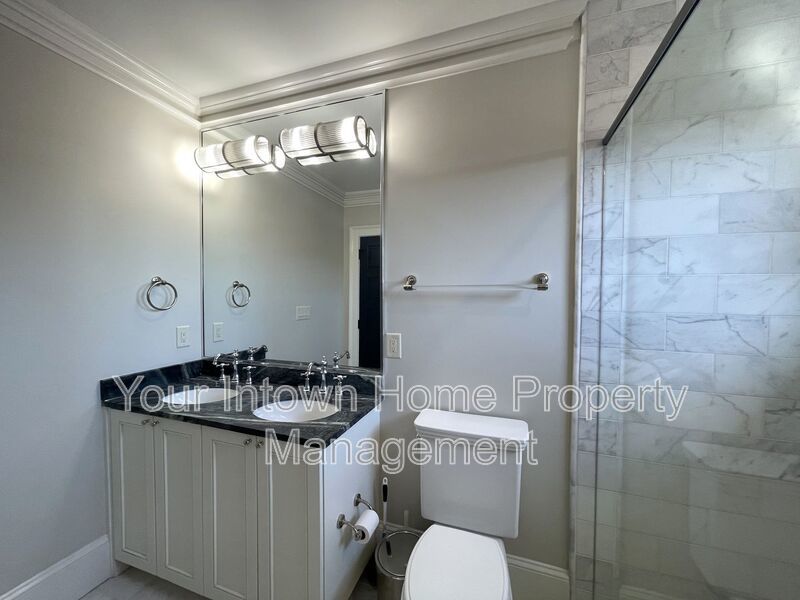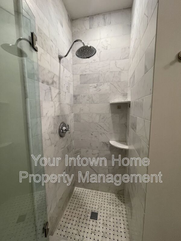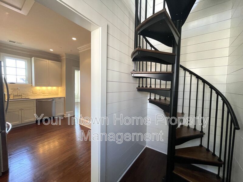 This light-filled 2-floor apartment features top-of-the line appliances and luxurious finishes. From marble countertops and hardwood floors to shiplap wood paneling and glass-front showers, no detail has been overlooked in the to-the-studs renovation of this historic building. Front and back staircases lead from the main level to the second floor which features an open living space, bedroom area and kitchenette. Bonus office space as well! Main level has bedroom, full bathroom, kitchen and living room with soaring, wood-beamed ceiling. Gated parking for two cars - rare find in intown Atlanta!