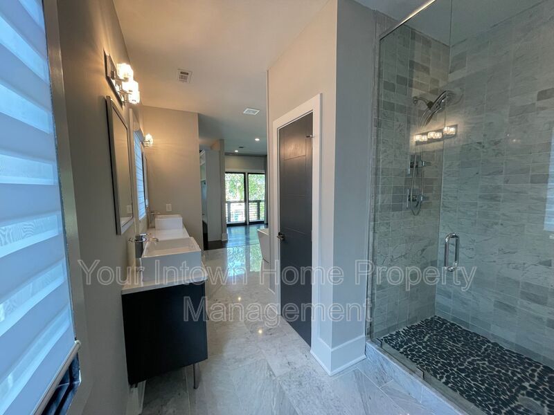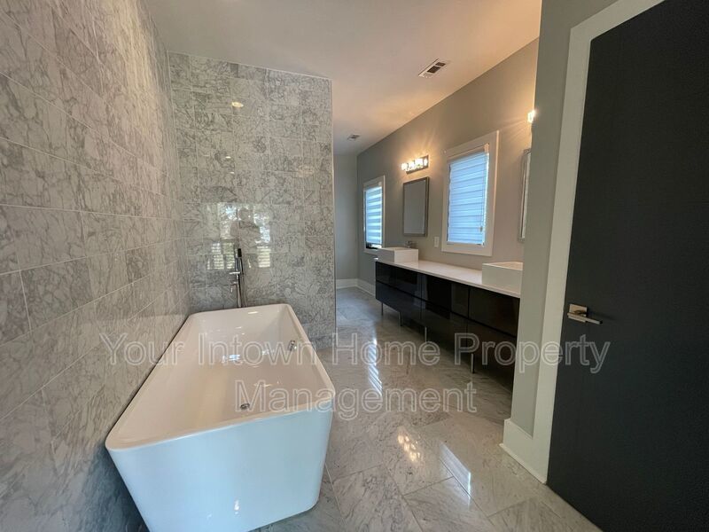 - Huge primary bath with soaking tub, glass shower, double vanity