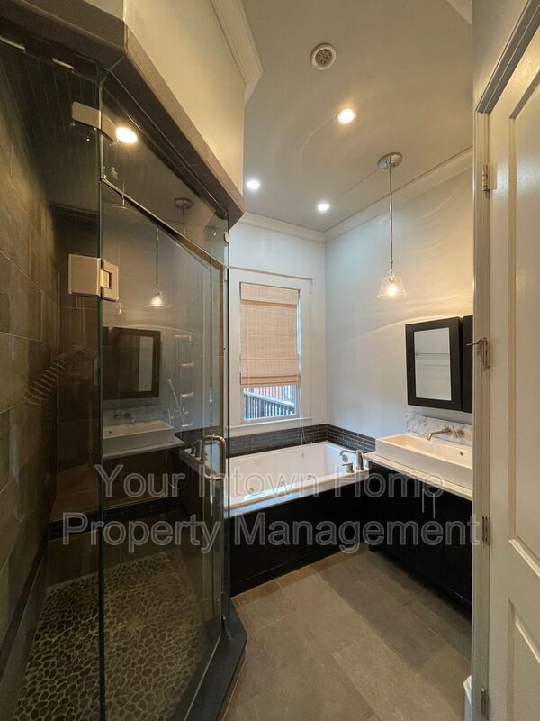 - Master bathroom has double vanity, shower and soaking tub