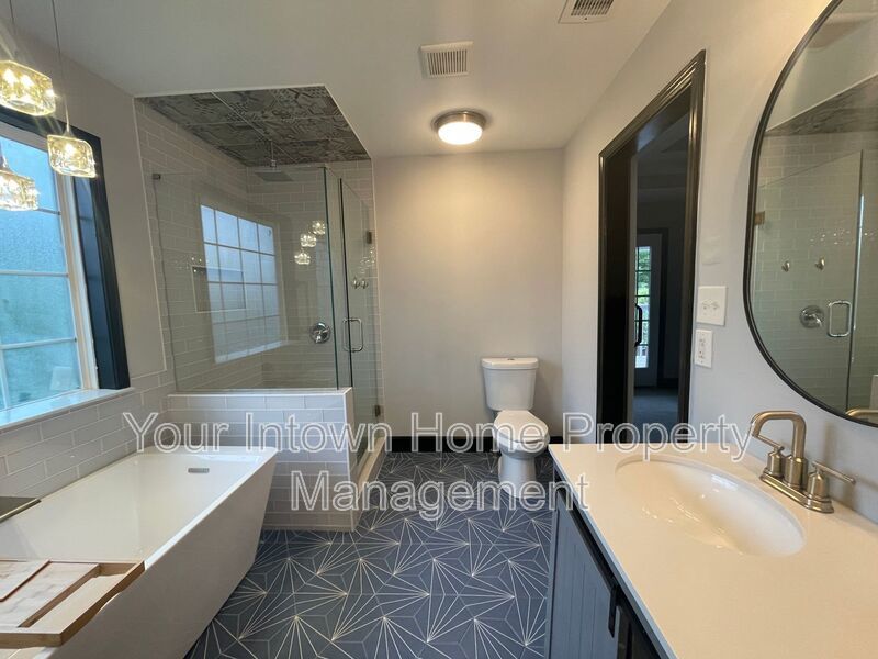 - Primary bathroom has rainfall showerhead, soaking tub and double vanity