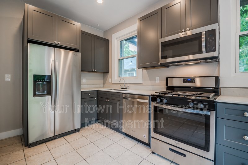 Beautifully renovated duplex combines old world charm with modern sophistication. This 2 BR/1 B unit features stainless steel appliances, subway tile and granite bathroom finishes, and hard wood floors throughout. Eat-in kitchen looks out on huge backyard, Generous front porch with swing overlooks the quiet tree-lined street and in back a deck and huge yard provide additional outdoor spaces. Located close to East Atlanta Village for restaurants, shops, and festivals. Close to everything, but tucked away on a quiet street. Walk to Little Azio for dinner then stop by Morelli’s Ice Cream for dessert.