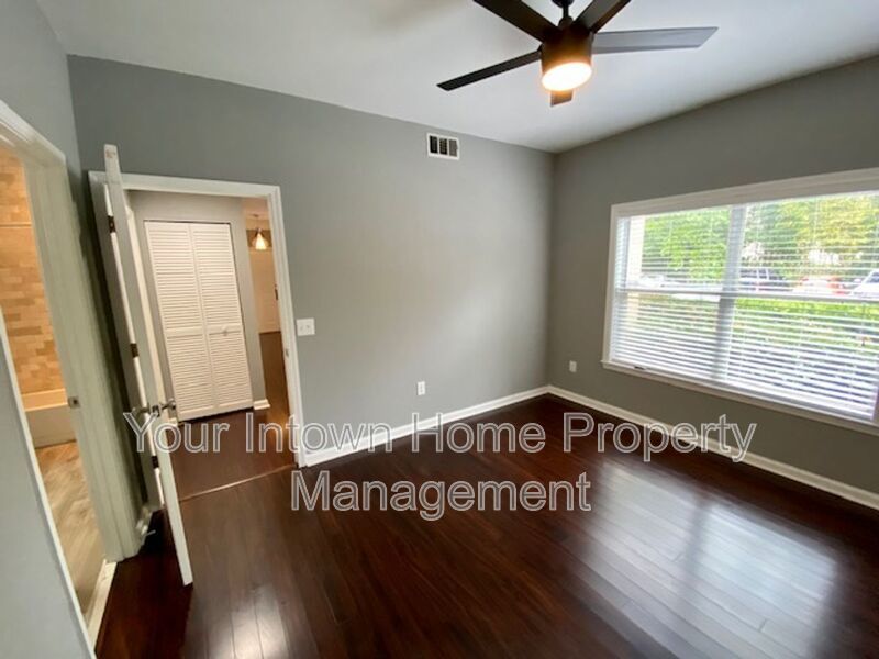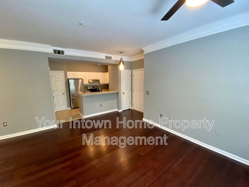Check out this first floor condo in the heart of Midtown! Nice-sized living areas, hardwoods throughout, many custom finishes and upgrades. Updated kitchen with stainless appliances. Bonus room makes a great office. Community is loaded with amenities: professional landscaping, pool, fitness, gorgeous common areas! Can't beat the location, between Juniper, Piedmont, 8th and 10th Streets, just a couple of blocks from Piedmont Park and the Beltline! Walk to many bars, restaurants and shops. Unit is all electric and includes washer/dryer. One assigned, gated parking space.