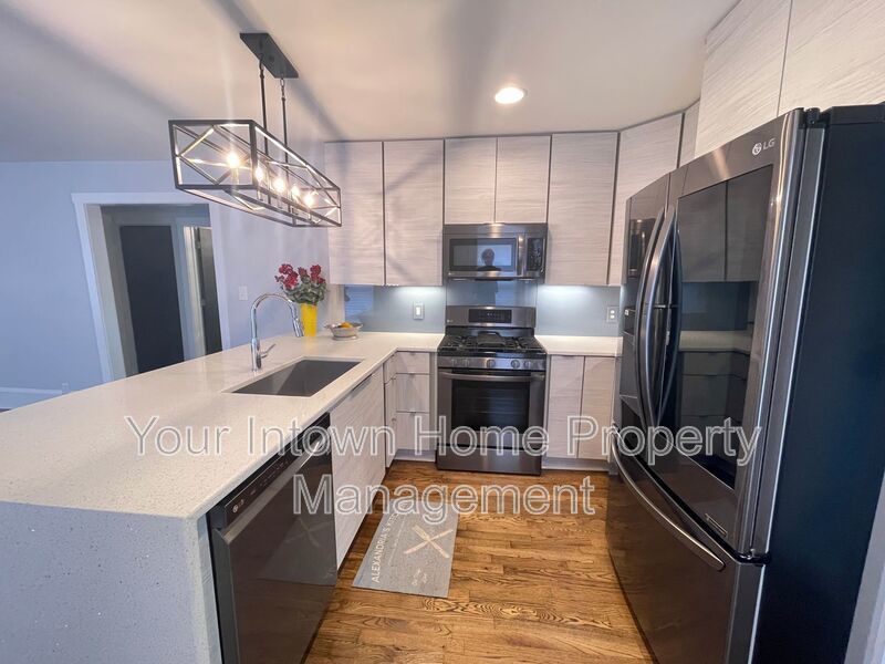 - Kitchen has quartz countertops, high-end appliances, under-cabinet lighting