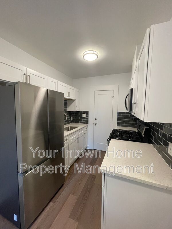 - Kitchen has SS appliances, quartz countertop, tile backsplash